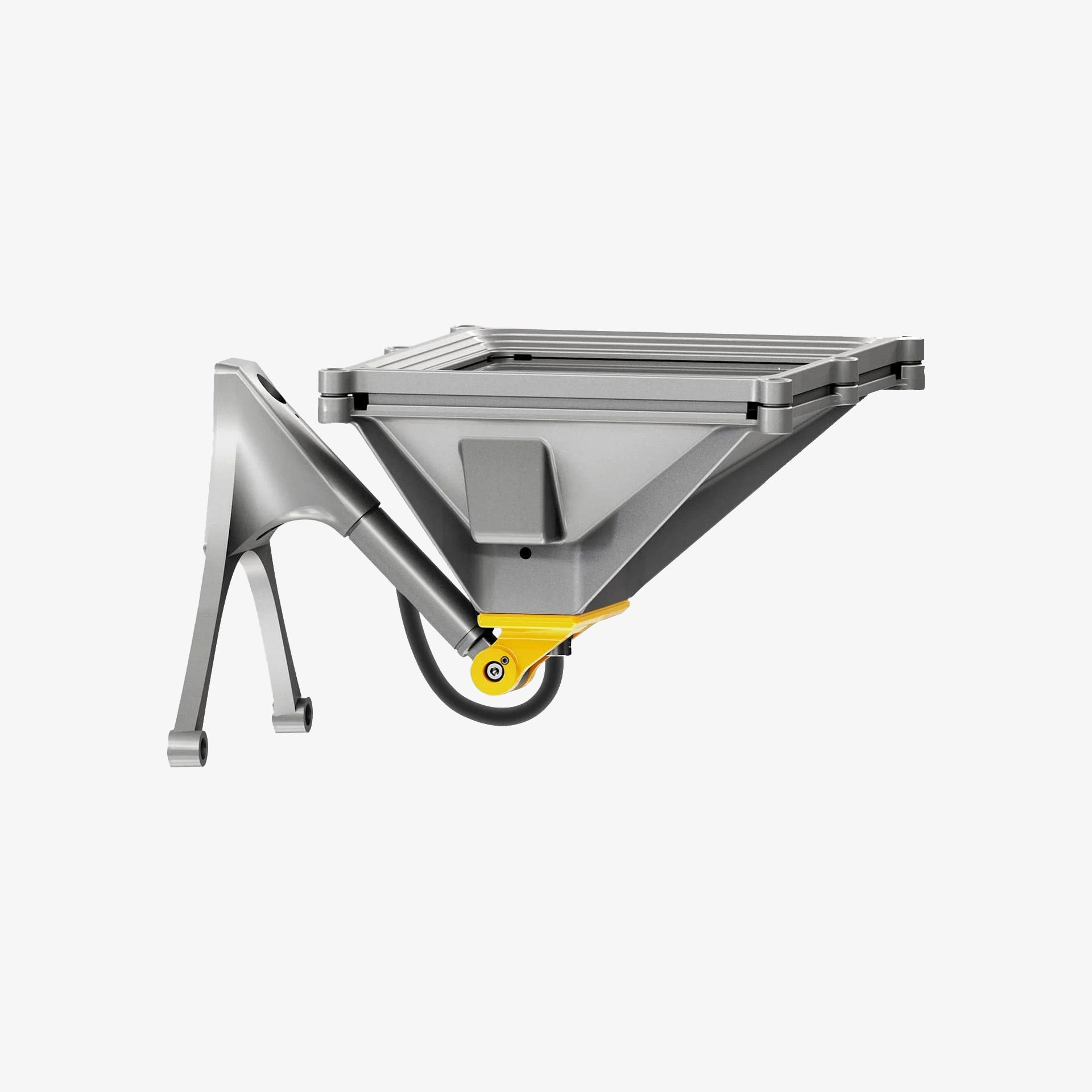 Floodlight designed to use LED lamps and a GL optic. Consisting of an optical assembly, a swivel joint, a glass-holding frame and a fork made of aluminium alloy, subjected to a multi-step, pre-treatment process, in which the main phases are degreasing, fluorozirconation and sealing. The following painting stage consists of a primer and a liquid acrylic paint, cured at 150°C, with a high level of weather and UV ray resistance. Transparent, 4mm thick, tempered sodium-calcium closing glass. The gasket is in black silicone. The product includes a Warm White monochrome circuit fitted with 1 reflector with an Opti Beam Reflector. The electronic DALI-2 power supply is integrated in the product and compatible with remote management systems. The frame includes steel retaining cables. The swivel joint allows the luminaire to be adjusted vertically by 180°. All external screws used are made of A2 stainless steel.