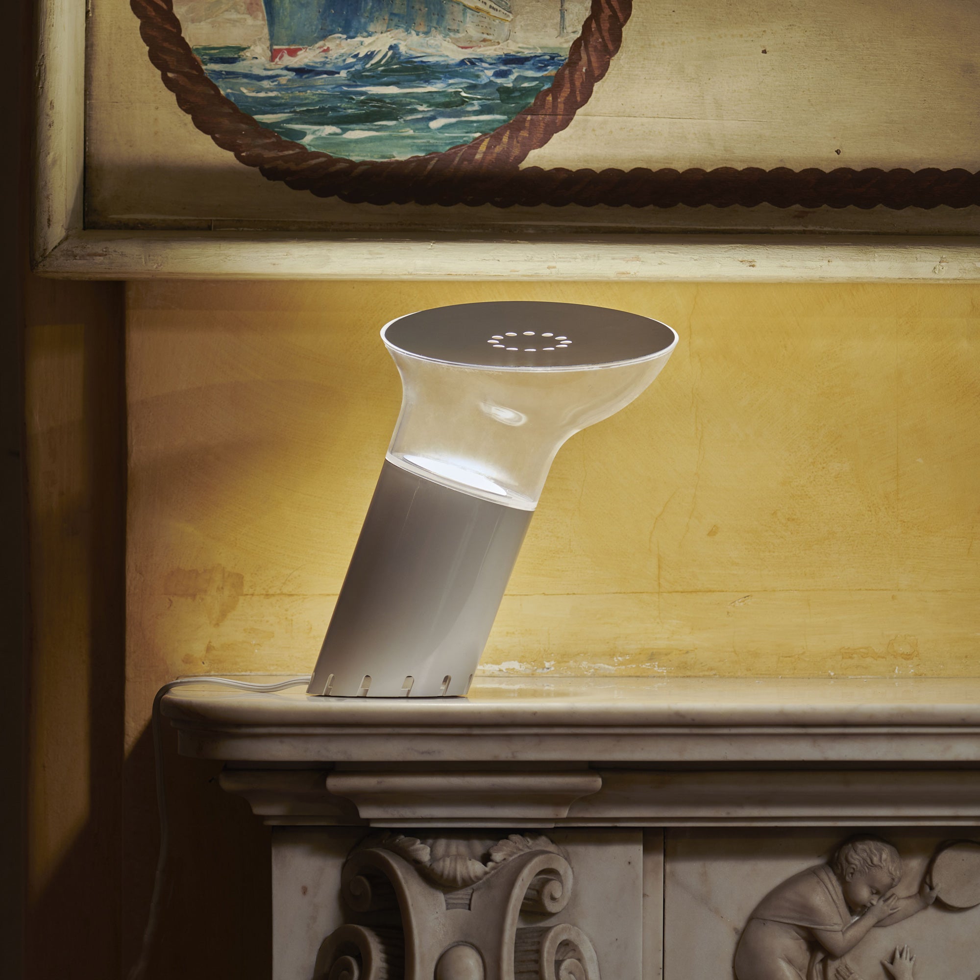 Diffused light table illuminating body H=294.20mm. PMMA base (complete with counterweight to ensure stability) and transparent methacrylate screen. Stainless steel upper cover disc and power supply cable L = 2000 with plug and ON-OFF section breaker switch. The screen can be rotated around the main axis. E14 40W LED lamp included.